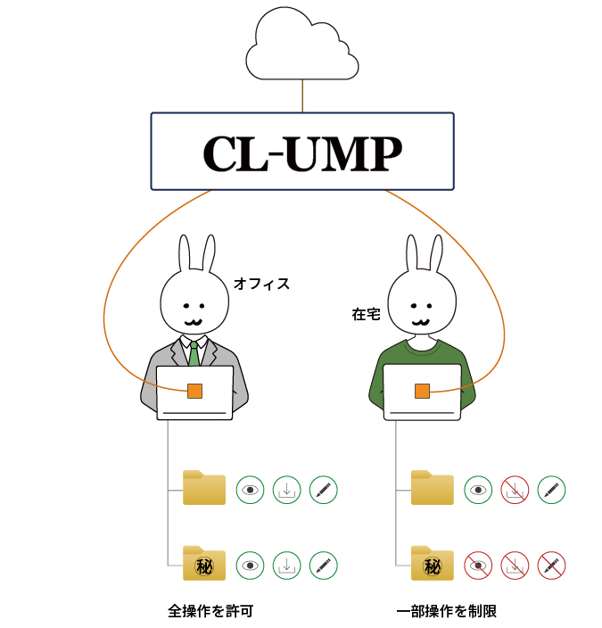 「CL-UMP」を利用することで、Boxの利用環境を自動判別し、状況に応じてアクセス権限を動的に切り替えることができます。テレワークなどの働き方改革、地方自治体におけるクラウドストレージサービス利用時の課題を解決する製品です。
