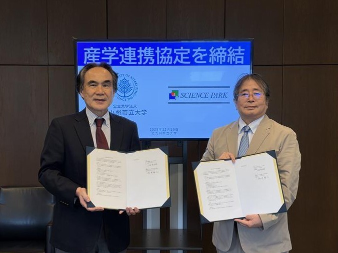 公立大学法人北九州市立大学(学長:柳井 雅人、以下「北九州市立大学」)とサイエンスパーク株式会社(代表取締役:小路 幸市郎、以下「サイエンスパーク」)は、教育研究において連携し、地域社会の人材育成と経済発展に貢献することを目的とした産学連携協定を締結しました。